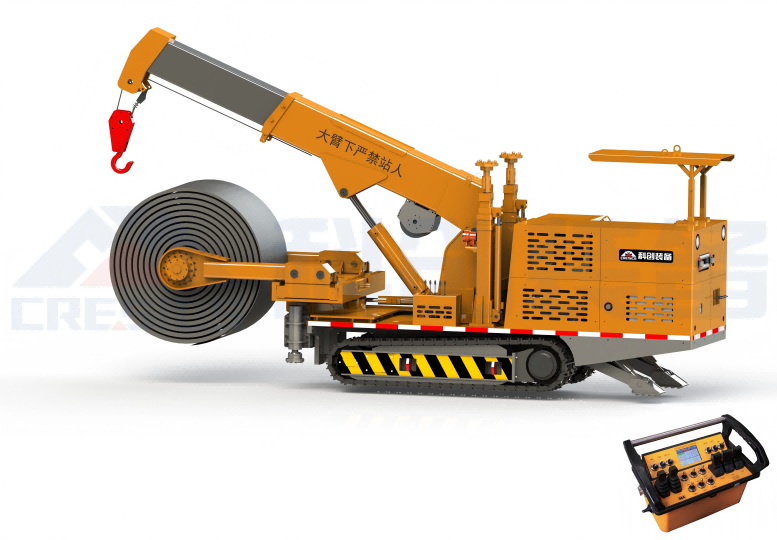 礦用液壓臂架式起吊裝置可用于綜采工作面采煤機(jī)、刮板輸送機(jī)、轉(zhuǎn)載機(jī)安裝、回撤過(guò)程中起吊搬運(yùn)設(shè)備, 是煤礦井下綜采設(shè)備的吊裝、轉(zhuǎn)運(yùn)提檔升級(jí)產(chǎn)品,實(shí)現(xiàn)工作面設(shè)備的安裝和回收機(jī)械化,