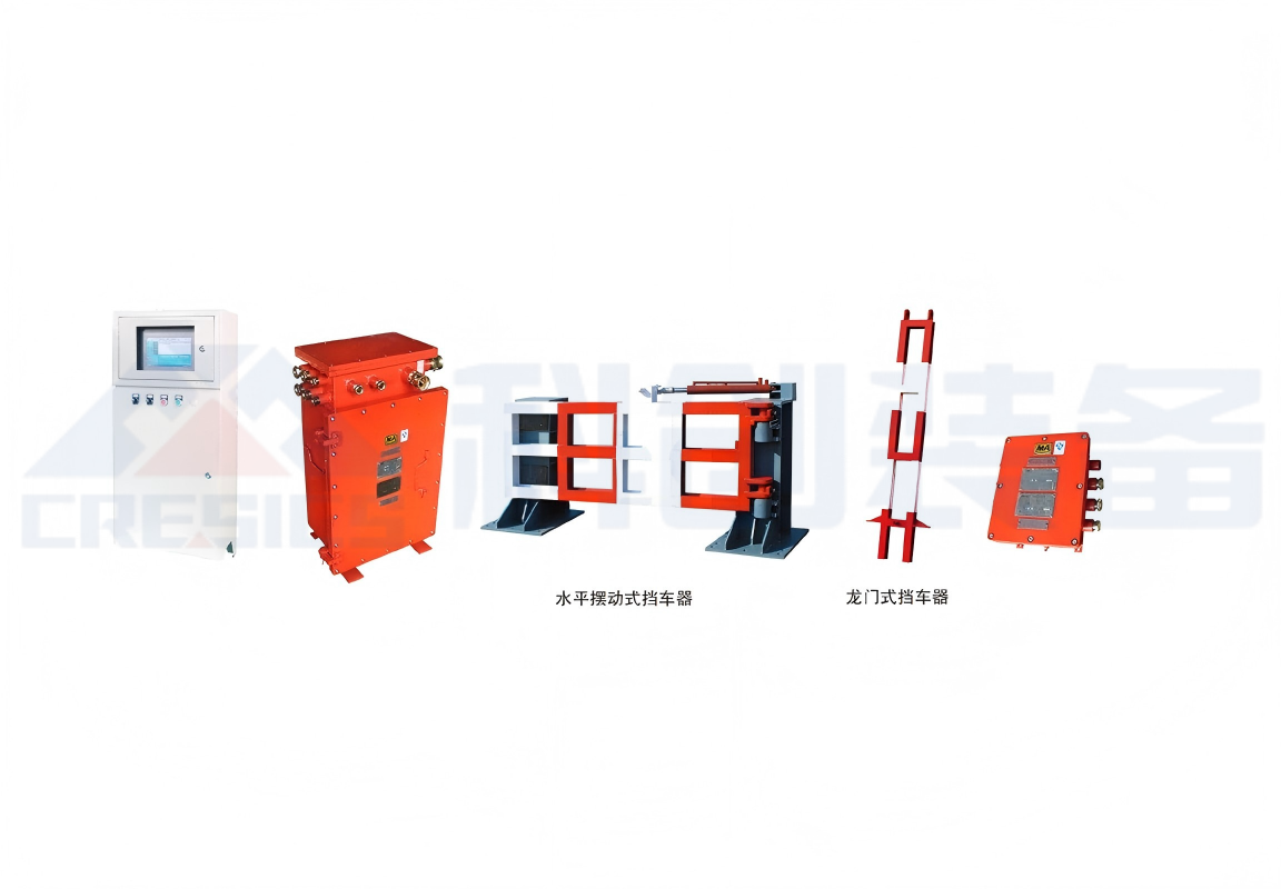 礦用擋車裝置用電控裝置主要由報警顯示柜、電控箱、位置傳感器等組成,主要適用于煤礦井口和車場中 道岔、阻車器、擋車器等裝置的自動控制。該裝置正常處于關(guān)閉狀態(tài)且與絞車連鎖,當(dāng)車輛需要通過時根據(jù)操 作命令或者自動打開、關(guān)閉阻車系統(tǒng),確保上部車場運輸安全。