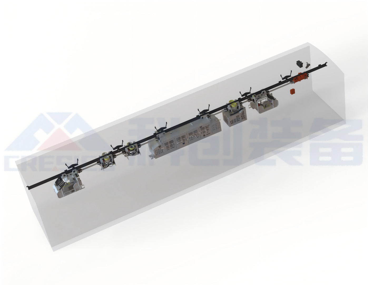 單軌吊機(jī)車是一種機(jī)動(dòng)性強(qiáng)、運(yùn)行速度快、載重量大、行駛于懸吊單軌系統(tǒng)的輔助運(yùn)輸設(shè)備,目前單軌吊機(jī) 車運(yùn)輸已成為一種普遍、實(shí)用性較強(qiáng)的礦井運(yùn)輸方式,主要用于煤礦綜采工作面大型設(shè)備的運(yùn)輸。目前礦井單軌 吊機(jī)車運(yùn)輸中,斜巷運(yùn)輸占有極其重要的位置,隨著當(dāng)前單軌吊機(jī)車的大量使用,單軌吊機(jī)車斜巷跑車事故時(shí)有 發(fā)生,對(duì)煤礦的安全生產(chǎn)造成極大的安全隱患。